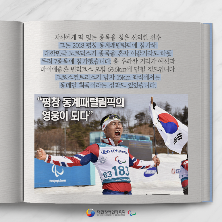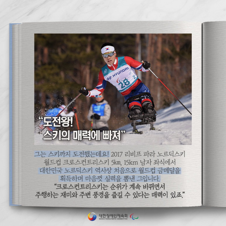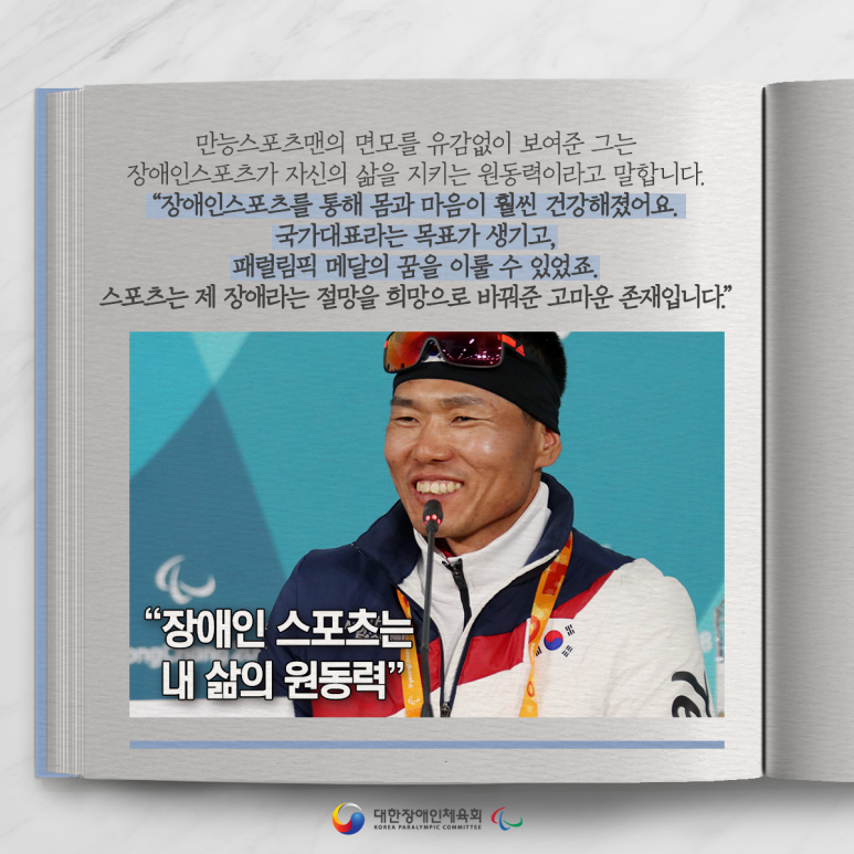 그는 2018 평창 동계패럴림픽에 참가해 대한민국 노르딕스키 종목을 혼자 이끌기라도 하듯