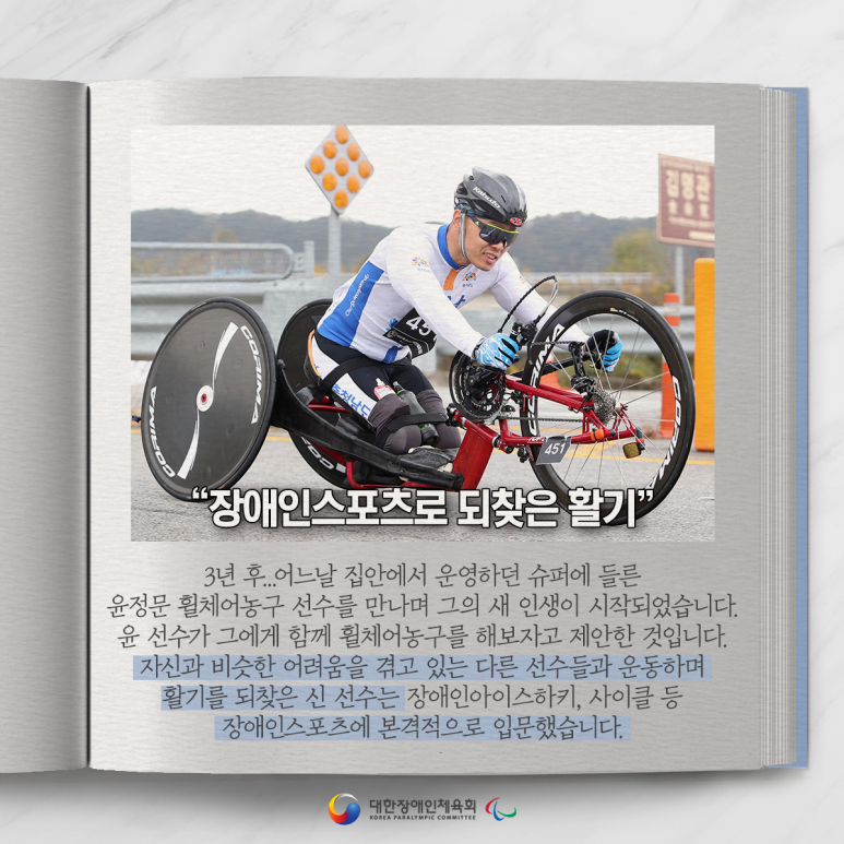 자신과 비슷한 어려움을 겪고 있는 다른 선수들과 운동하며 활기를 되찾은 신 선수는 장애인아이스하키, 사이클 등