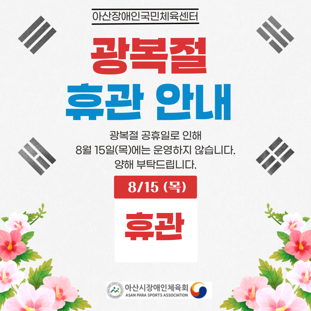 8월15일(금) 아산장애인국민체육센터 휴관안내