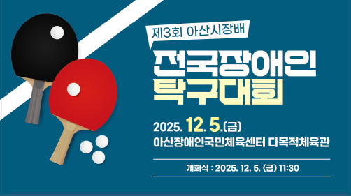 다가오는 12월, 따뜻한 정이 넘치는 아산에서 제3회 아산시장배 전국장애인탁구대회가 개최될 예정입니다.