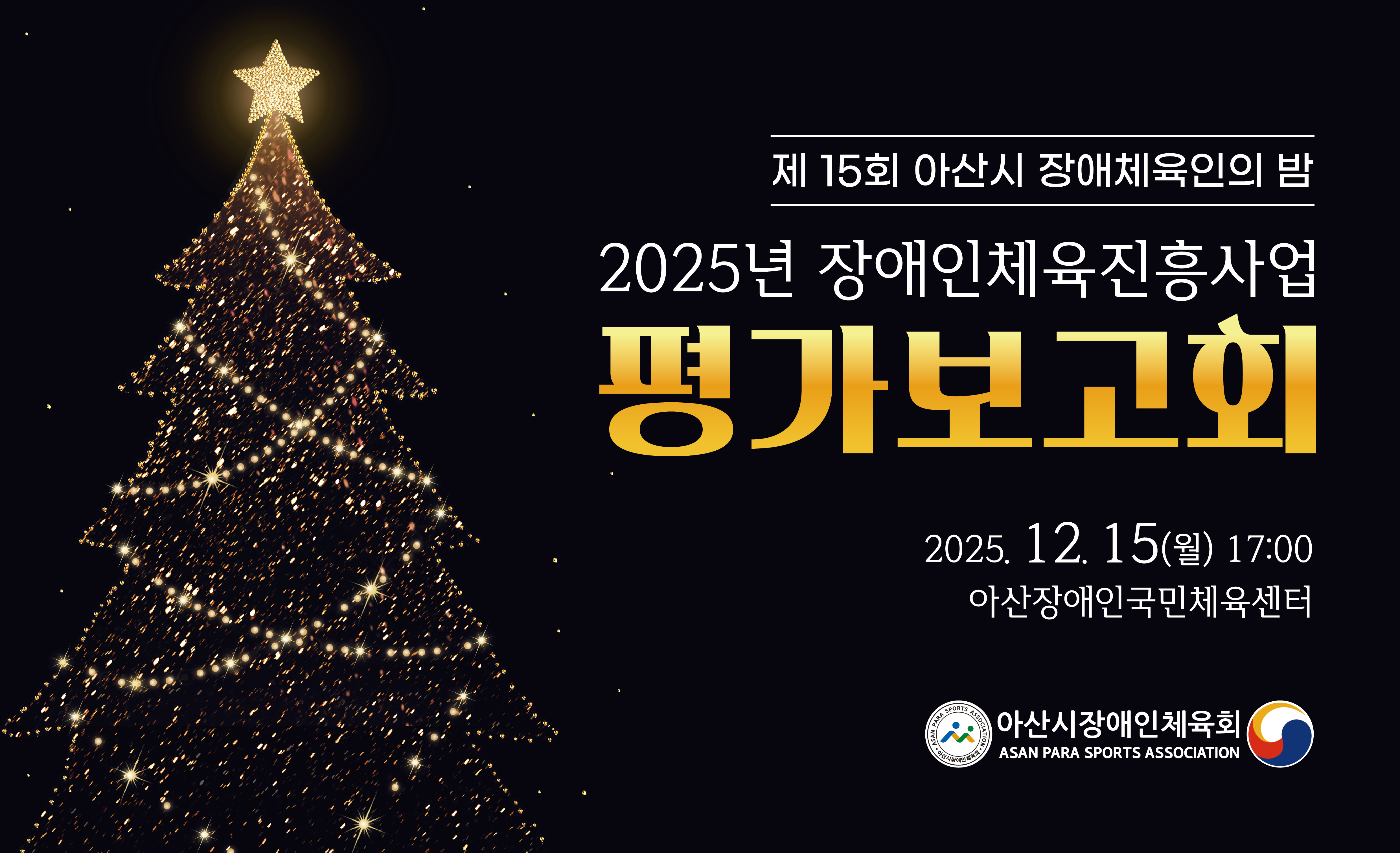 2025년 한 해를 마무리하며 아산시 장애인체육 발전을 위해 헌신해주신 모든 분들과 함께하는〈제15회 아산시 장애체육인의 밤>을 개최합니다.