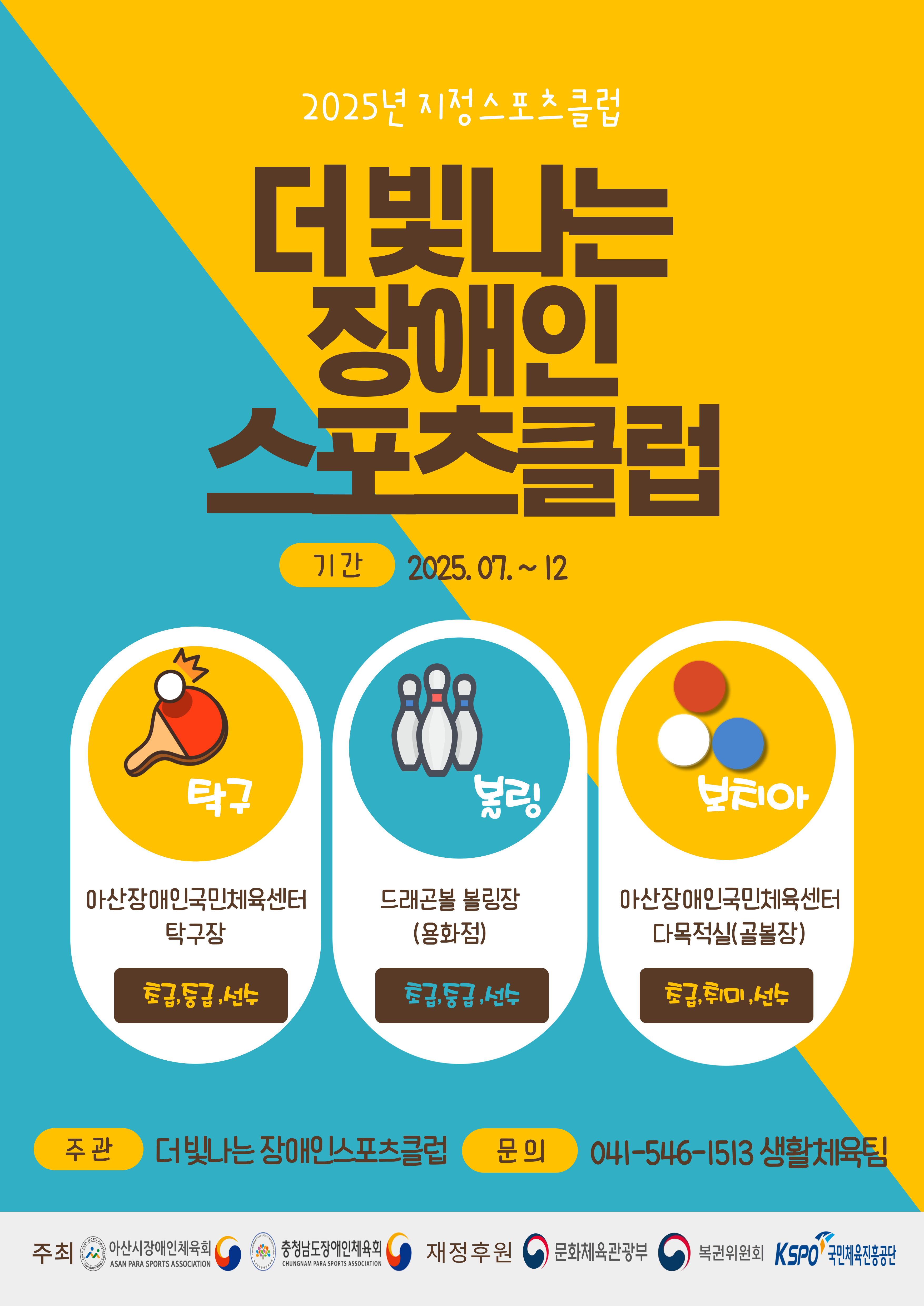 4. 문 의 : 아산시장애인체육회 생활체육팀 (Tel:041-546-1513)