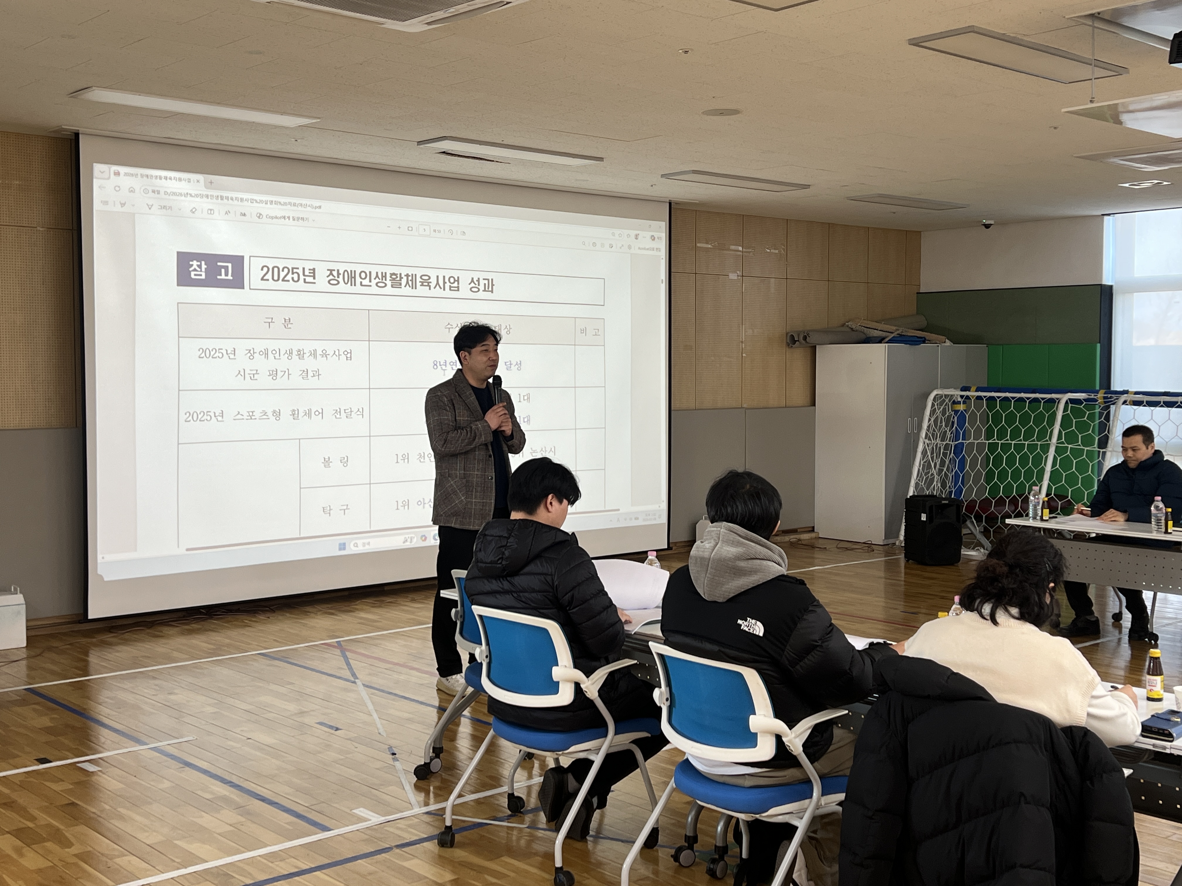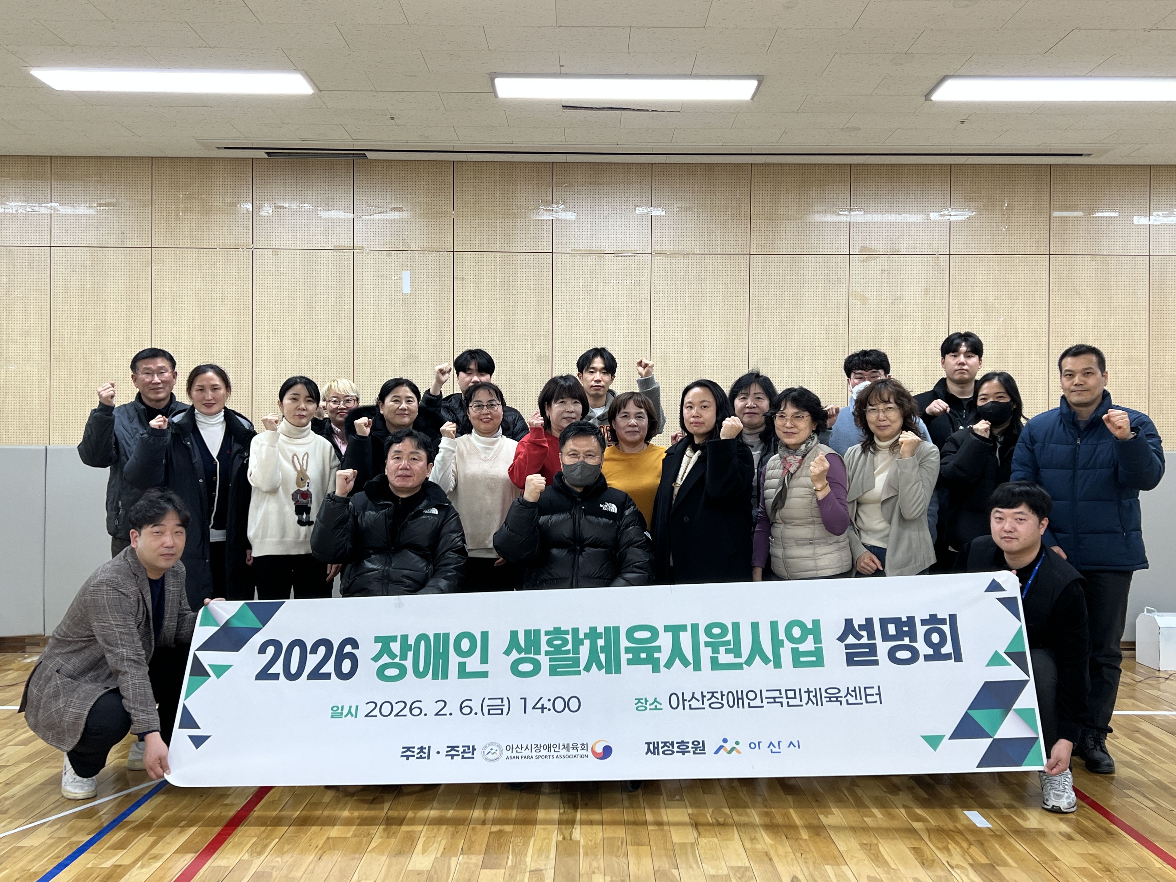 아산시장애인체육회는 2월 6일(금) 14시, 아산장애인국민체육센터에서「2026년 장애인생활체육지원사업 설명회」를 개최하였습니다.