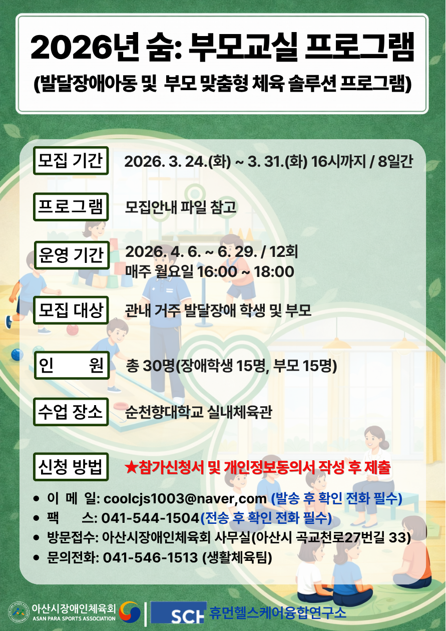 아산시장애인체육회에서 알려드립니다