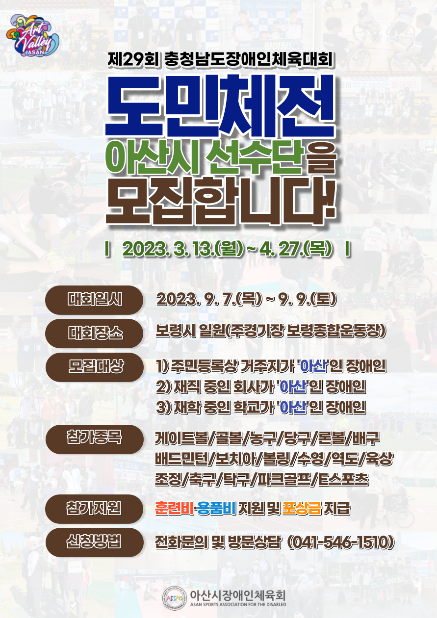 ● 제29회 충청남도장애인체육대회 <아산시 선수단> 모집