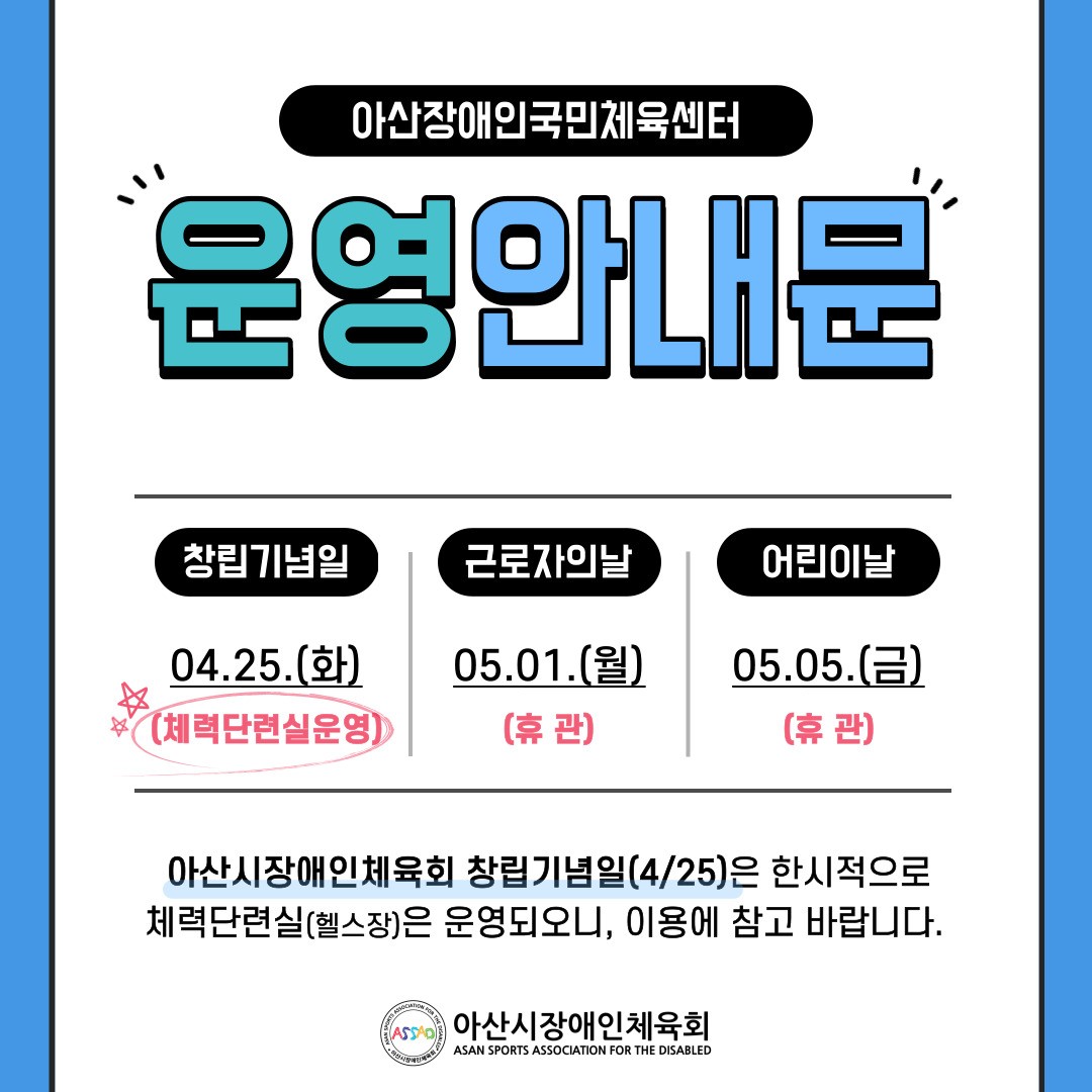 아산시장애인체육회 창립기념일(4/25)