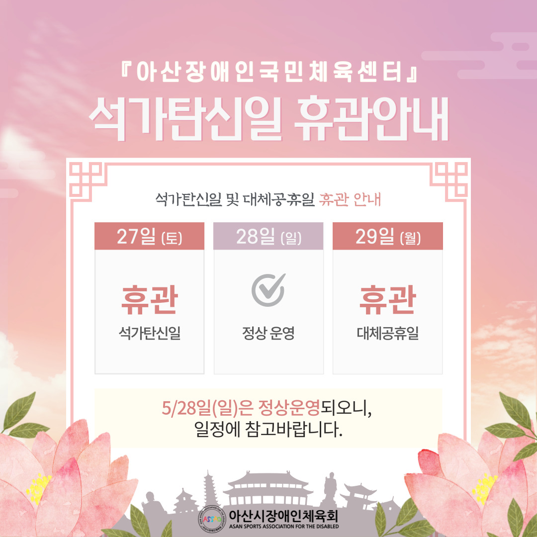 석가탄신일 및 대체공휴일 휴관 안내드립니다.