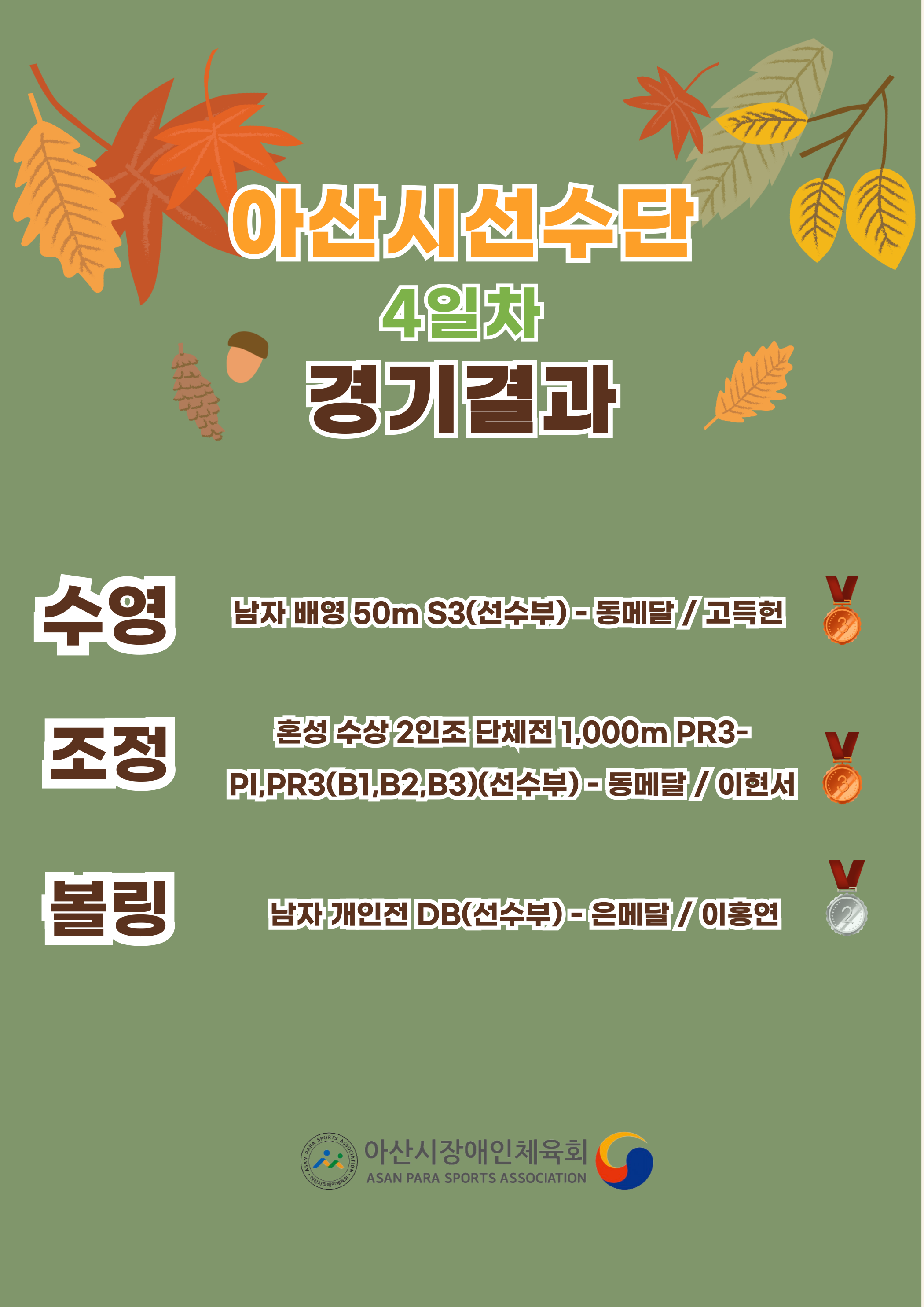 제44회 전국장애인체육대회 <아산시 선수단> 4일차 입상소식 전해드립니다!