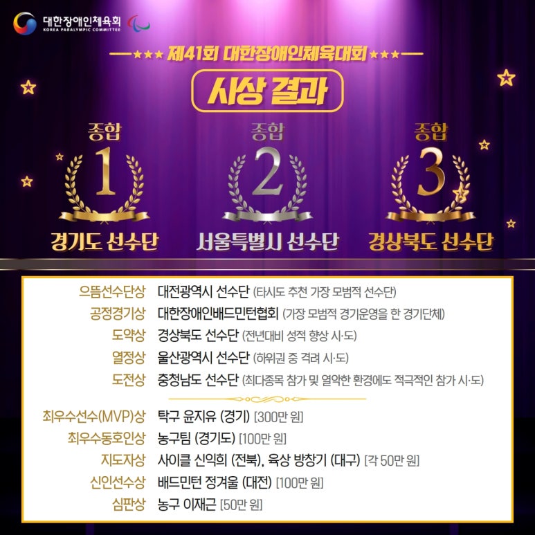 ◆ 제41회 전국장애인체육대회 시상 결과 ◆
