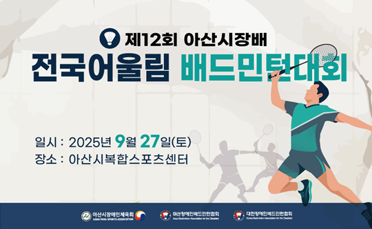 제12회 아산시장배 전국어울림배드민턴대회가 아산시 복합스포츠센터에서 9월 27일(토)에 개최됩니다.