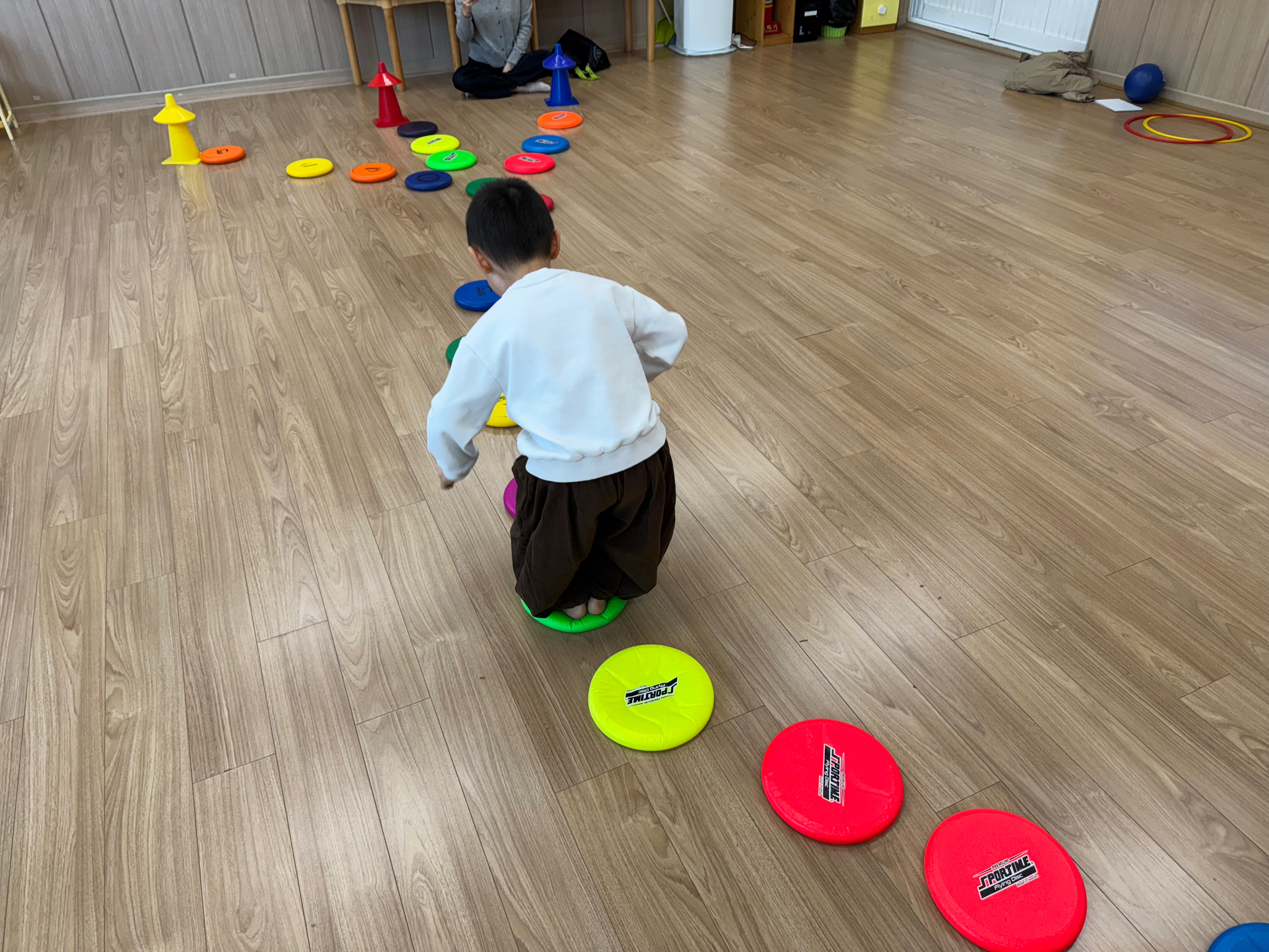 매주 화요일, 온양온천초 병설유치원 특수체육교실에서는 기본운동기술과 물체조작기술 향상을 목표로 수업을 진행하고 있습니다. 여러가지 교구를 활용하여 시•지각과 촉각 및 인지를 자극하는 다양한 놀이 및 스포츠를 경험할 수 있도록 노력하고 있습니다.