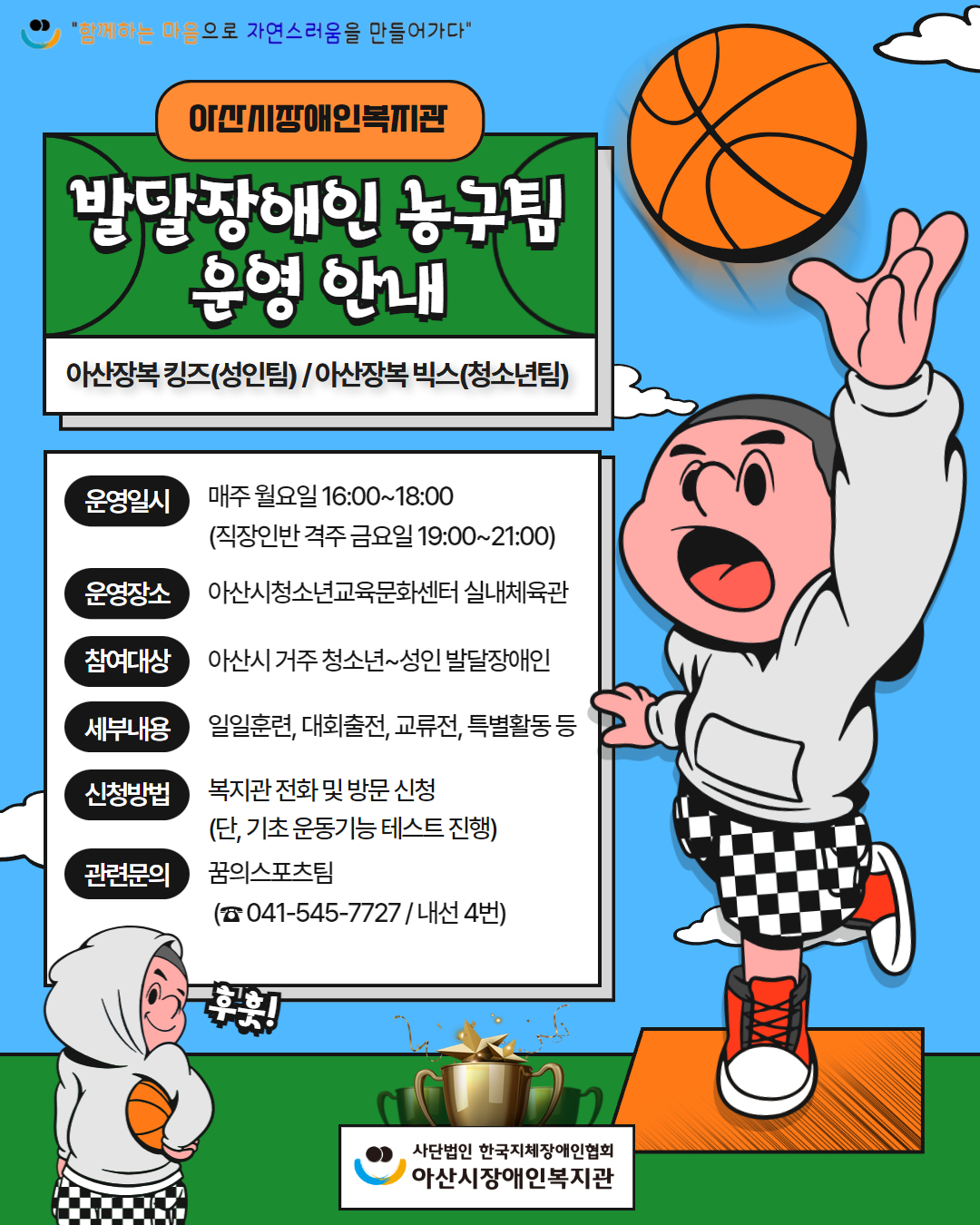 농구를 통해 다양한 경험과 꿈을 실현하고자 하는 발달장애인(지적,자폐)의 많은 관심과 참여 바랍니다.