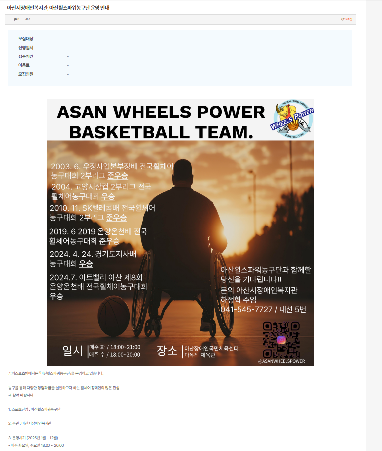 5. 문의 : 041-545-7727 / 아산시장애인복지관 하정혁 생활체육교사