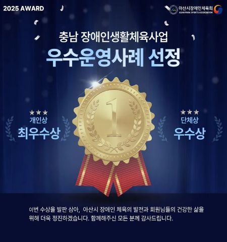 아산시장애인체육회가 충청남도 장애인생활체육 분야에서 탁월한 운영 역량을 인정받으며 지역 장애인체육의