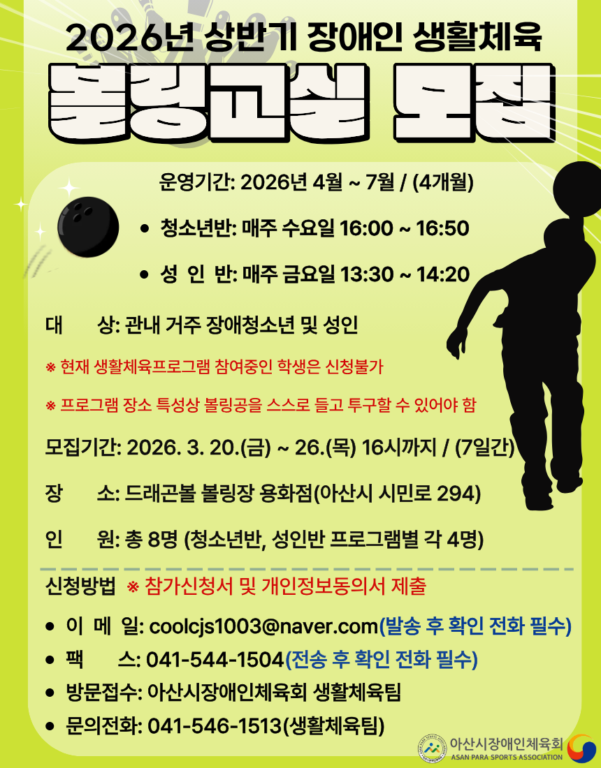2026년 상반기 장애인 생활체육 볼링교실 참가자 모집 안내